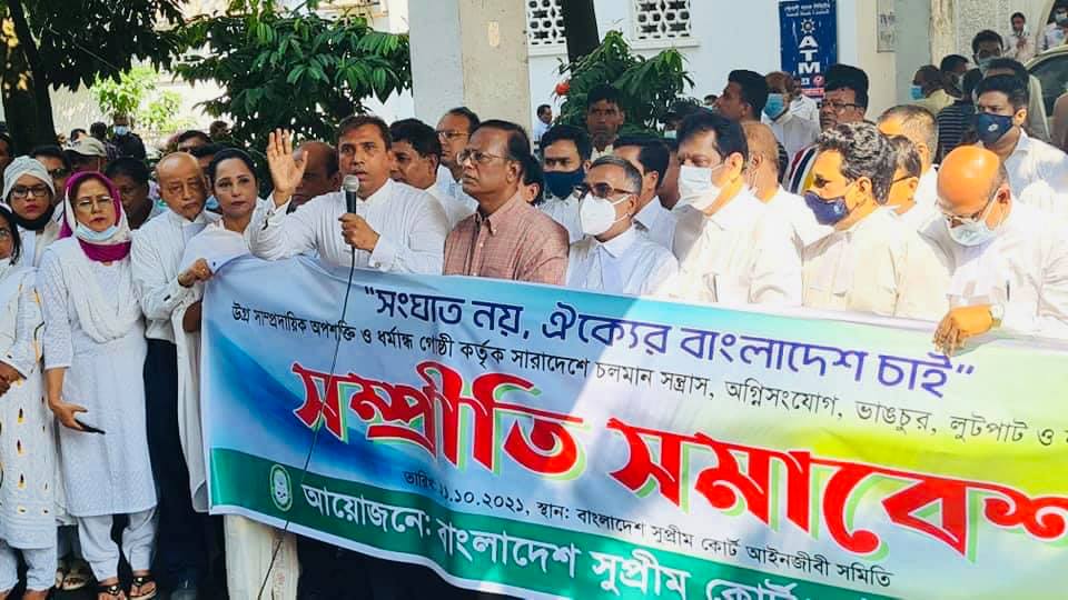 কুমিল্লাসহ সারাদেশে সম্প্রতি ঘটা সহিংসতার প্রতিবাদ জানিয়ে সম্প্রীতি সমাবেশ করেছে সুপ্রিম কোর্ট আইনজীবী সমিতির একাংশ। বৃহস্পতিবার (২১ অক্টোবর) দুপুরে সমিতির...