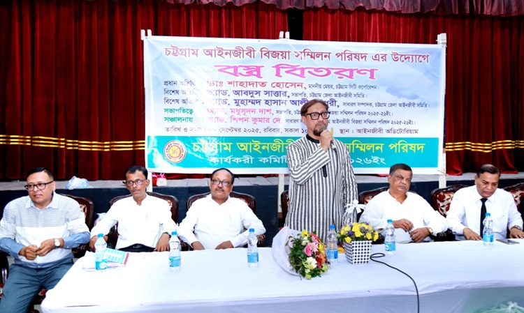 চট্টগ্রাম আইনজীবী বিজয়া সম্মিলন পরিষদের উদ্যোগে আইনজীবী অডিটরিয়ামে অসহায়, দুস্থ, এতিম ও দরিদ্র মানুষের মাঝে বস্ত্র বিতরণ করা হয়েছে। শনিবার (২৮ সেপ্টেম্বর) আয়োজিত এ অনুষ্ঠানে প্রধান অতিথি ছিলেন চট্টগ্রাম সিটি করপোরেশনের মেয়র ডা. শাহাদাত হোসেন।