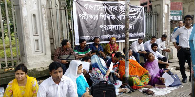 খাতা পুনর্মূল্যায়নের দাবিতে বার কাউন্সিলের সামনে অবস্থান কর্মসূচি
