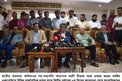জাতীয় ঐকমত্য কমিশনের সহ-সভাপতি অধ্যাপক আলী রীয়াজ জানিয়েছেন, রাজনৈতিক দলগুলোর সাথে ঐকমত্য কমিশনের ১২তম দিনের আলোচনায় জরুরি অবস্থা ঘোষণা সংক্রান্ত...
