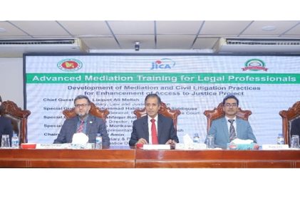 বিরোধ নিষ্পত্তির বিকল্প ও কার্যকর পদ্ধতি হিসেবে মধ্যস্থতা ব্যবস্থাকে শক্তিশালী করতে আইন পেশাজীবীদের জন্য দুই দিনব্যাপী ‘অ্যাডভান্সড মিডিয়েশন ট্রেনিং’ আয়োজন...